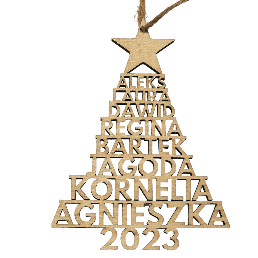 Nasza drewniana bombka w kształcie choinki z imionami to nie tylko ozdoba, ale także wyjątkowy element, który stworzony jest z myślą o innych. Wyraź swoje uczucia w wyjątkowy sposób. Zamów teraz i podaruj prezent pełen miłości i magii świąt!