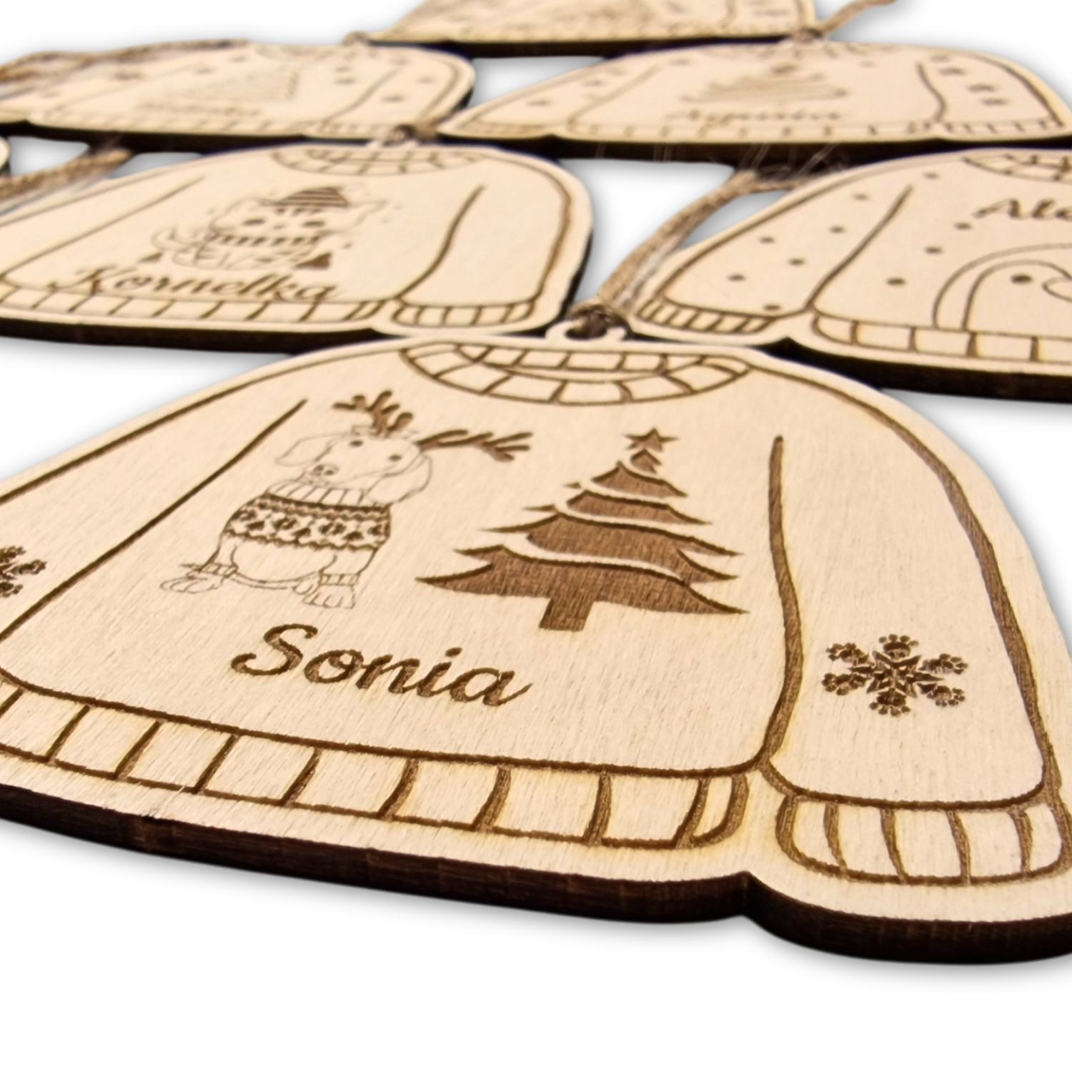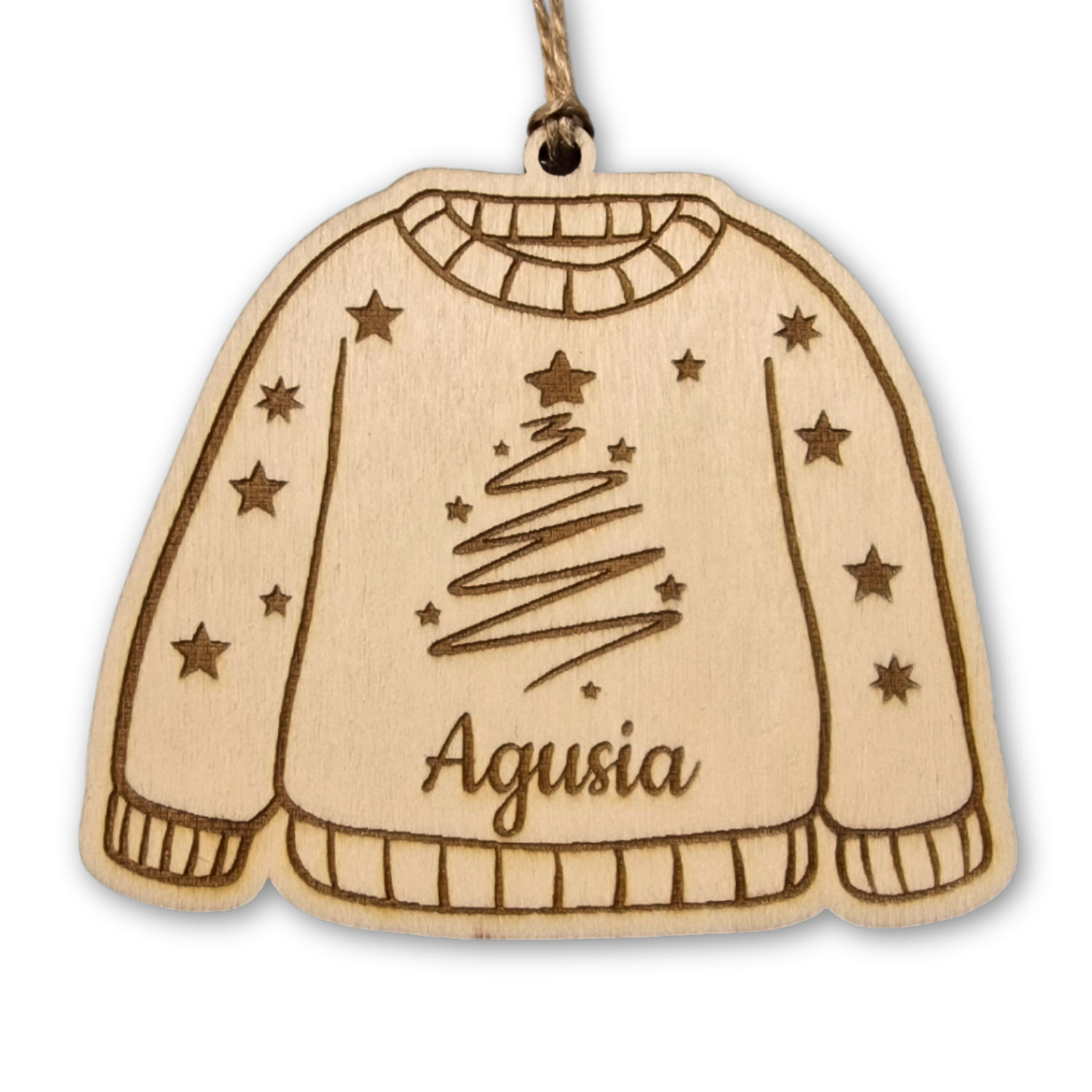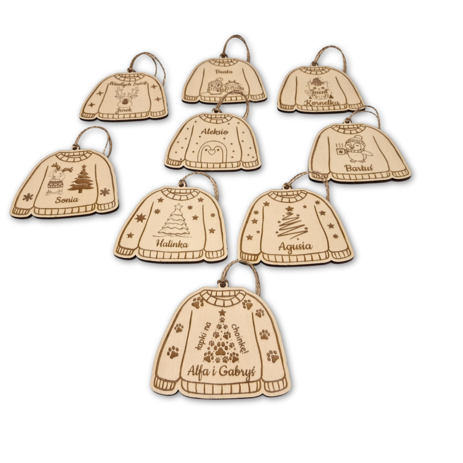 Zapraszamy do zapoznania się z wyjątkową bombką drewnianą w kształcie Świątecznego sweterka. Do wyboru aż 29 wzorów! Ta urocza ozdoba świąteczna jest nie tylko elegancka, ale także personalizowana, dzięki czemu stanie się niezapomnianym akcentem podczas Bożego Narodzenia. Nasza bombka wykonana jest z najwyższej jakości sklejki, ręcznie szlifowana z wyraźnym i trwałym grawerem co zapewnia jej wyjątkowy urok.