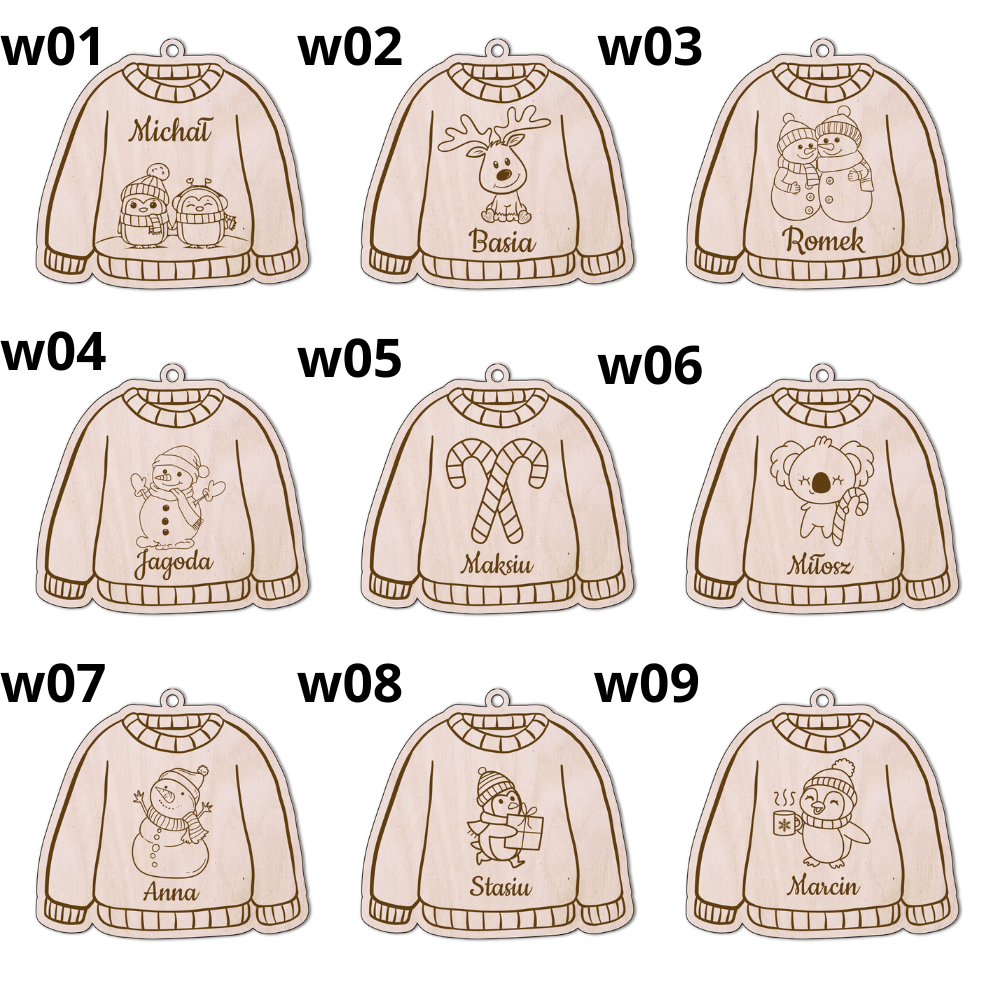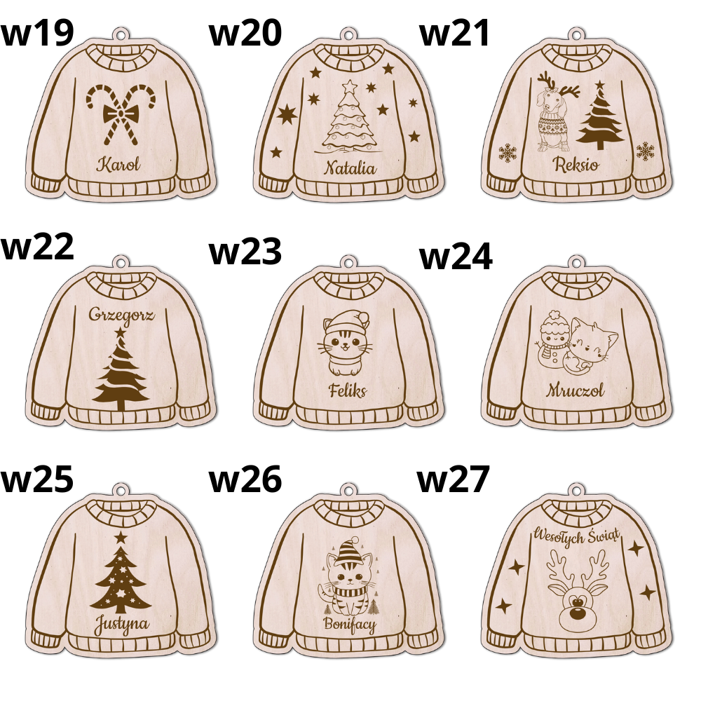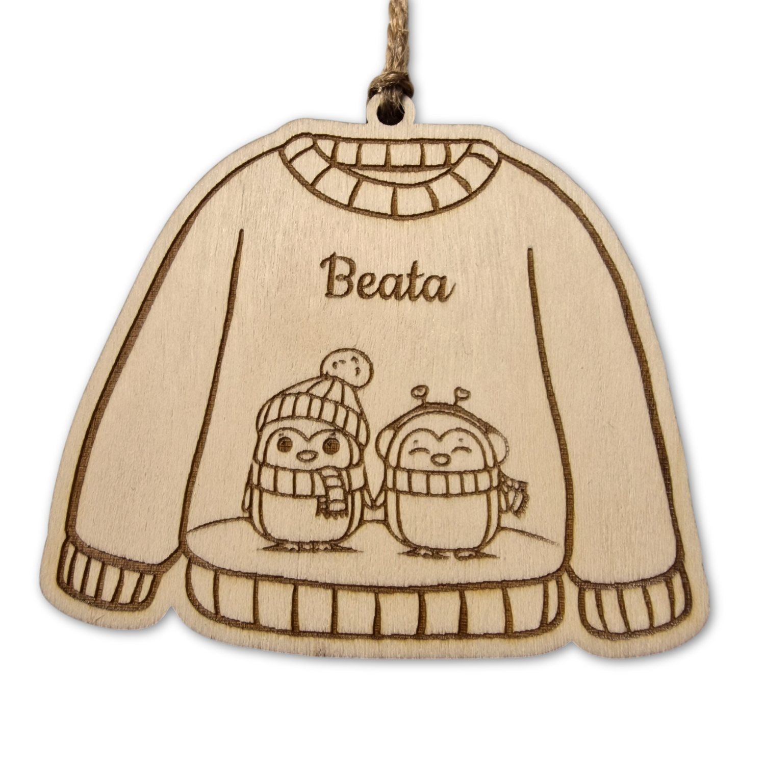 Zapraszamy do zapoznania się z wyjątkową bombką drewnianą w kształcie Świątecznego sweterka. Do wyboru aż 29 wzorów! Ta urocza ozdoba świąteczna jest nie tylko elegancka, ale także personalizowana, dzięki czemu stanie się niezapomnianym akcentem podczas Bożego Narodzenia. Nasza bombka wykonana jest z najwyższej jakości sklejki, ręcznie szlifowana z wyraźnym i trwałym grawerem co zapewnia jej wyjątkowy urok.