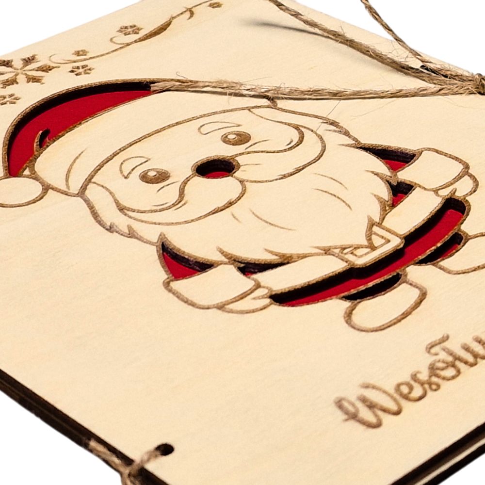 Drewniana Kartka Świąteczna z kopertą na pieniądze – Mikołaj
