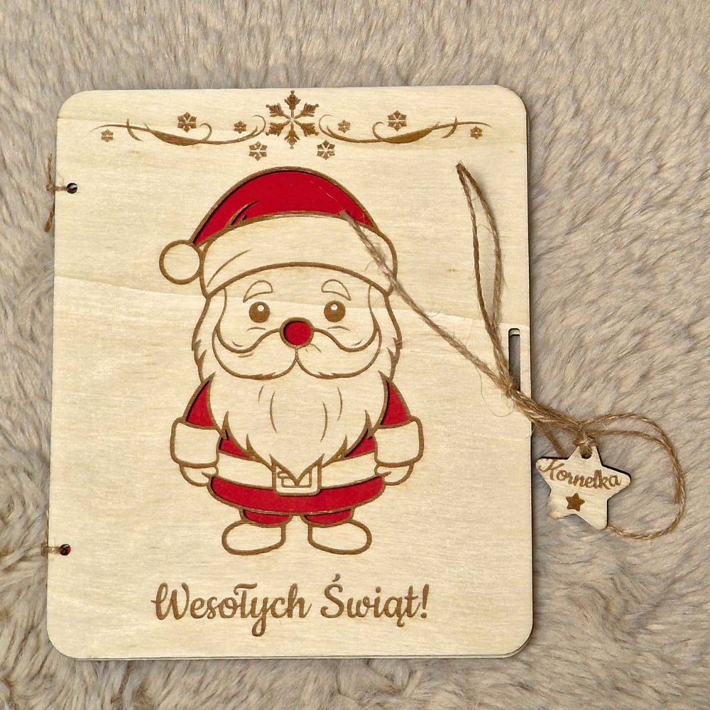 Drewniana Kartka Świąteczna na pieniądze – Mikołaj