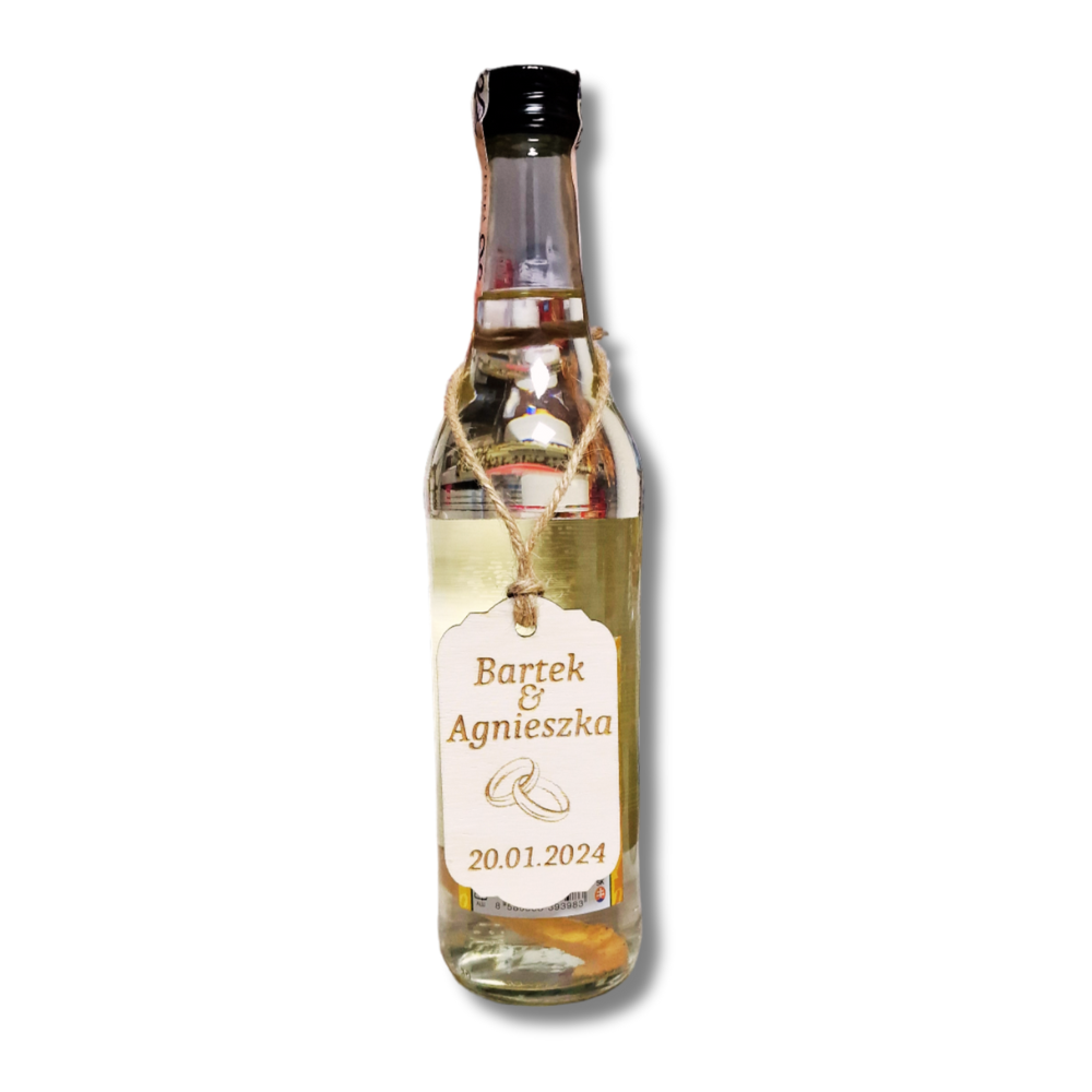 Zapraszamy do odkrywania naszej wyjątkowej drewnianej zawieszki na wódkę weselną, która stworzy niezapomniany akcent na Waszym ślubie. Wykonujemy ją z najwyższej jakości sklejki. Ta urocza zawieszka jest nie tylko elegancka, ale także personalizowana, aby sprawić, że Wasze wspólne święto będzie jeszcze bardziej wyjątkowe.
