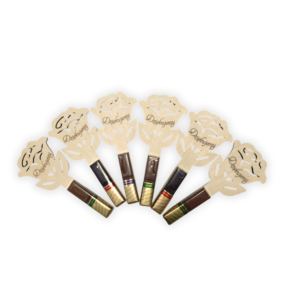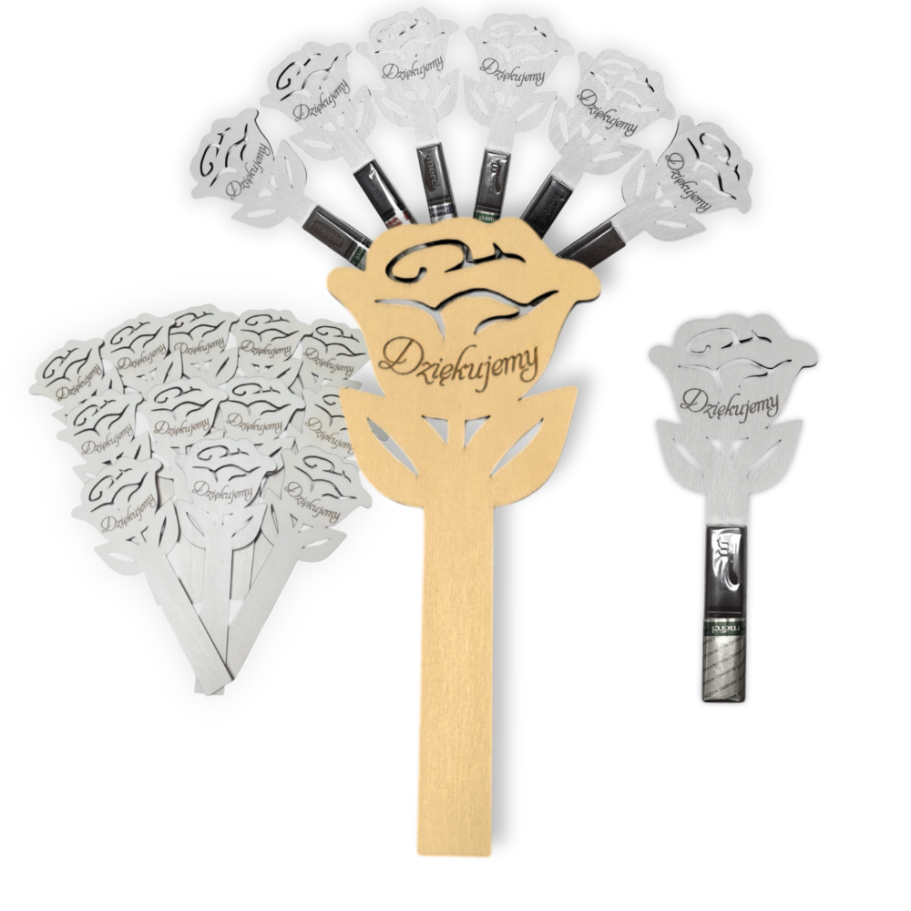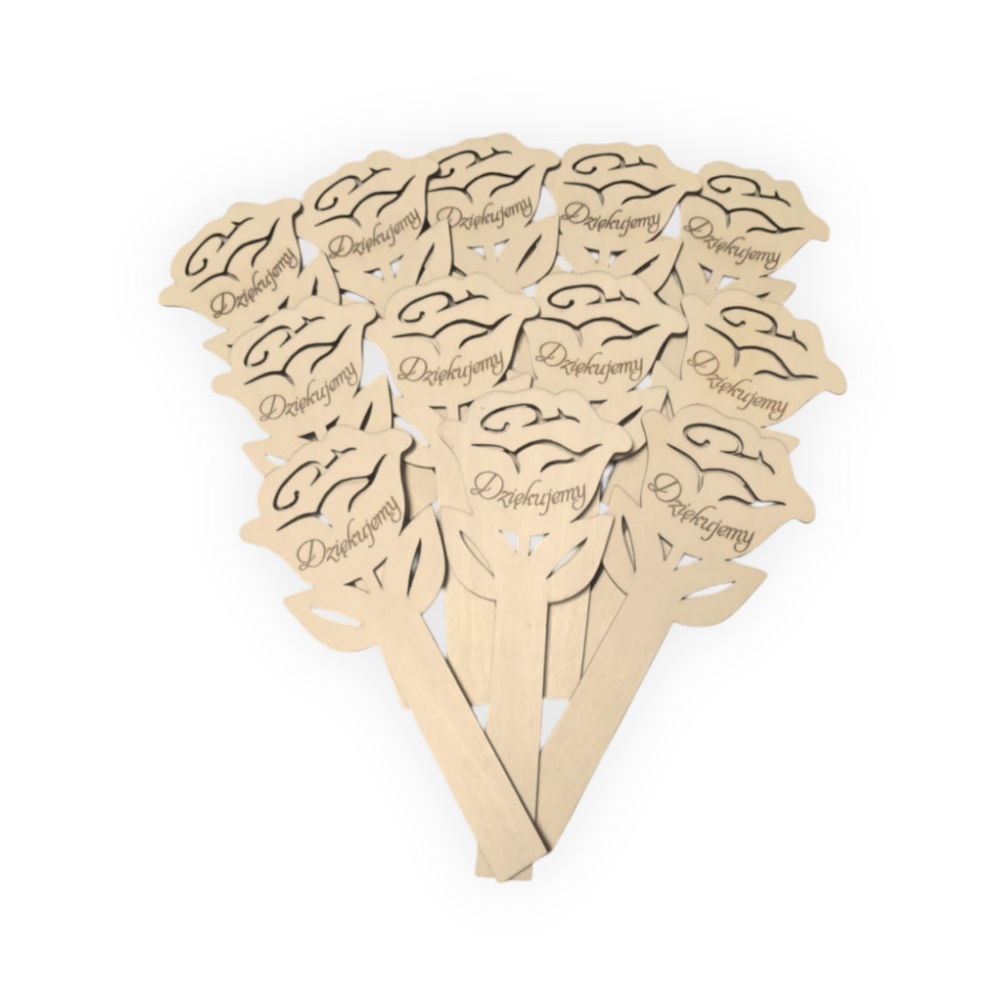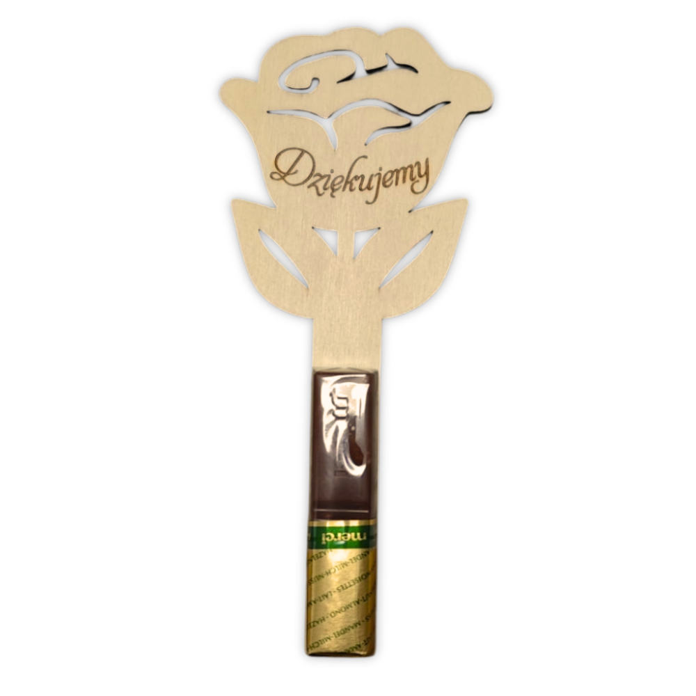 Różyczka z wygrawerowanym słowem „Dziękujemy”, które możesz zmienić na dowolne inne w zależności od okazji. Na przykład „Dziękuję„, „Kocham Cię” itp. Podaj tę informację w polu personalizacji.