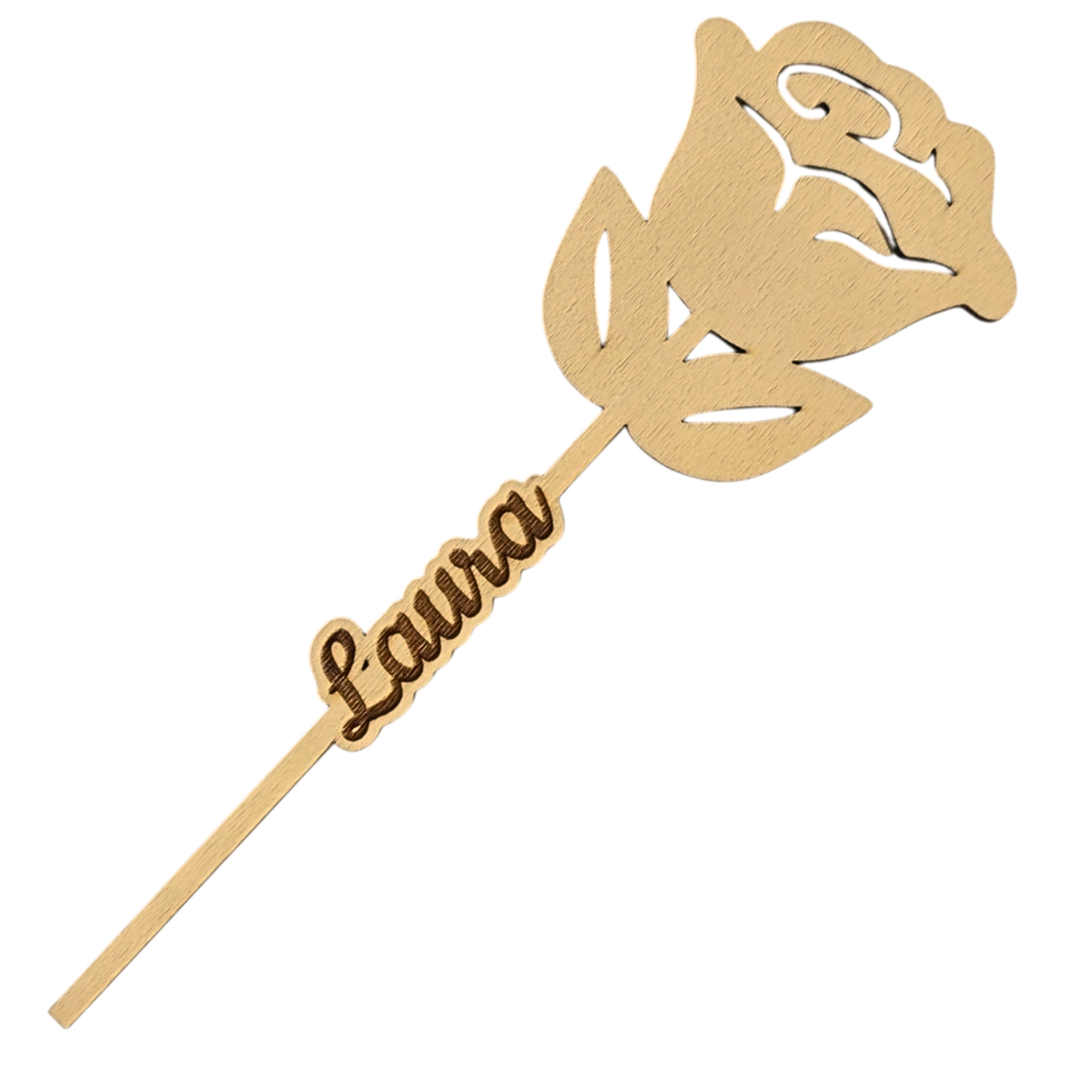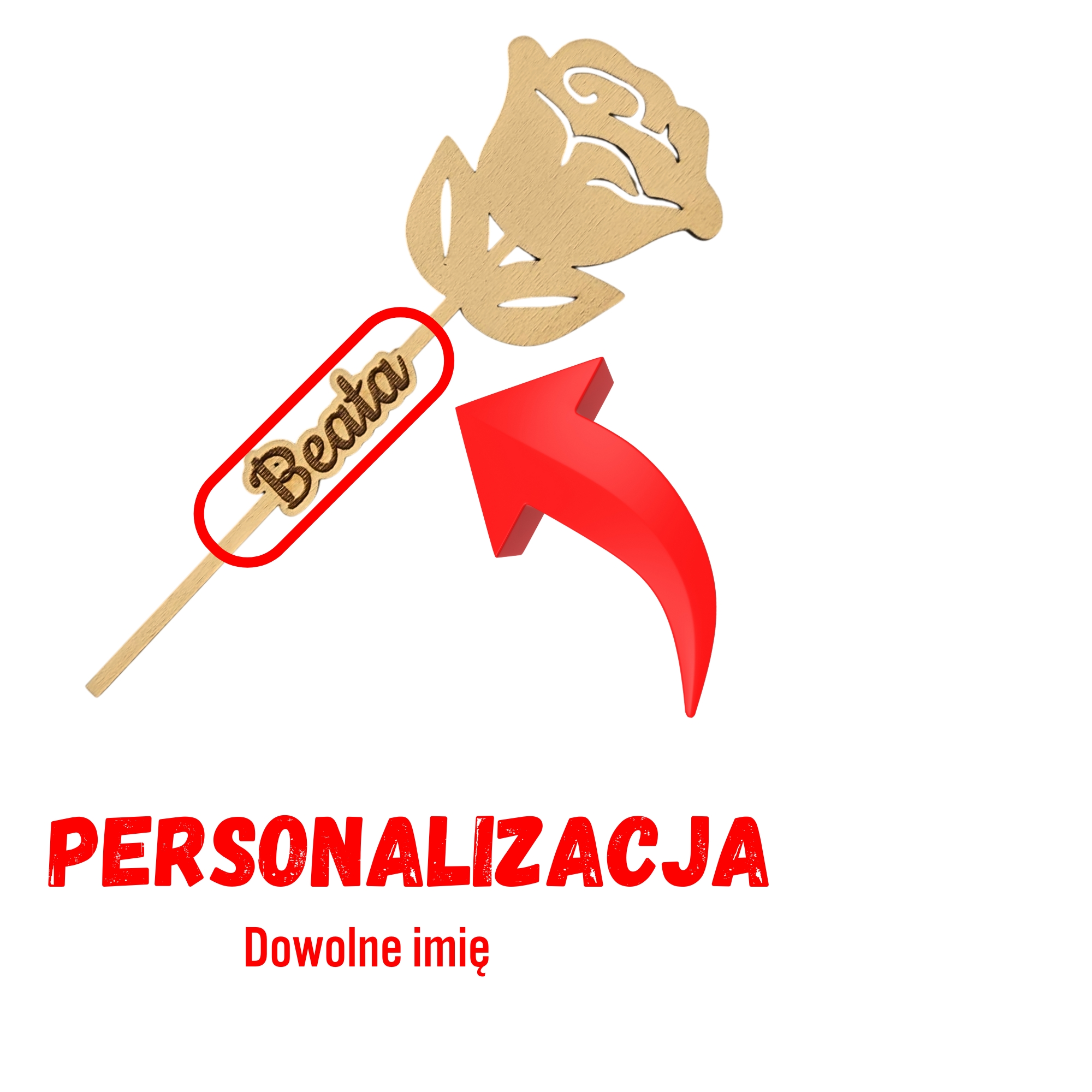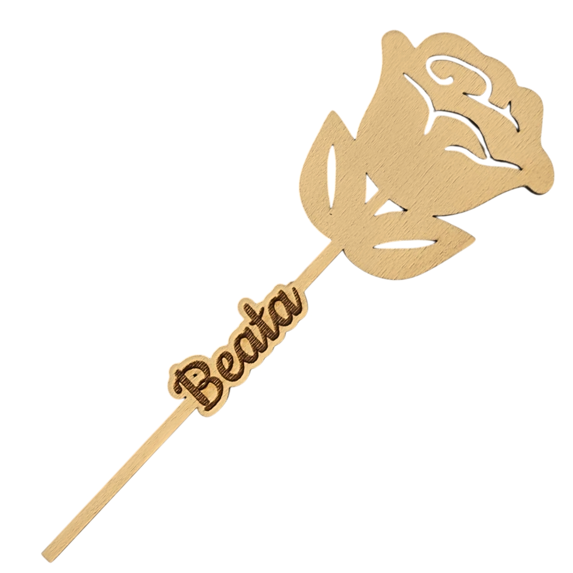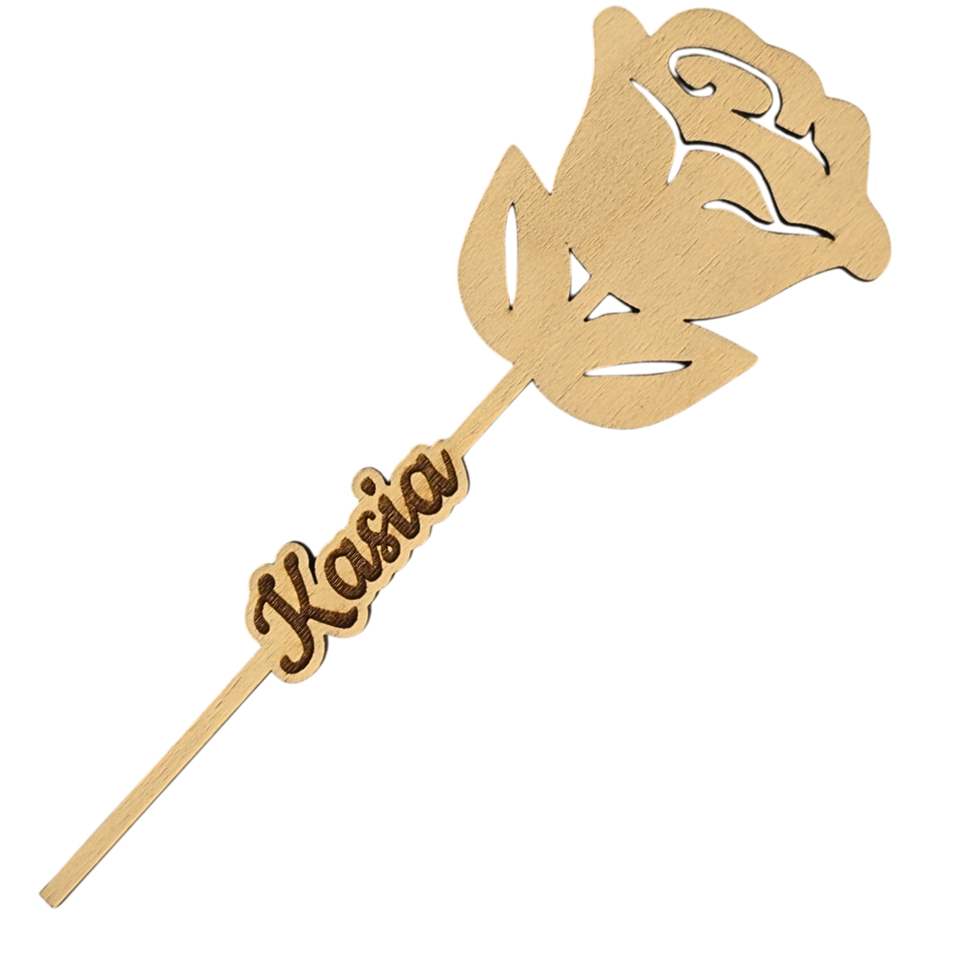 - Imię – zostanie wygrawerowane na łodydze wyciętej laserowo pod jego kształt. (np. Agnieszka)