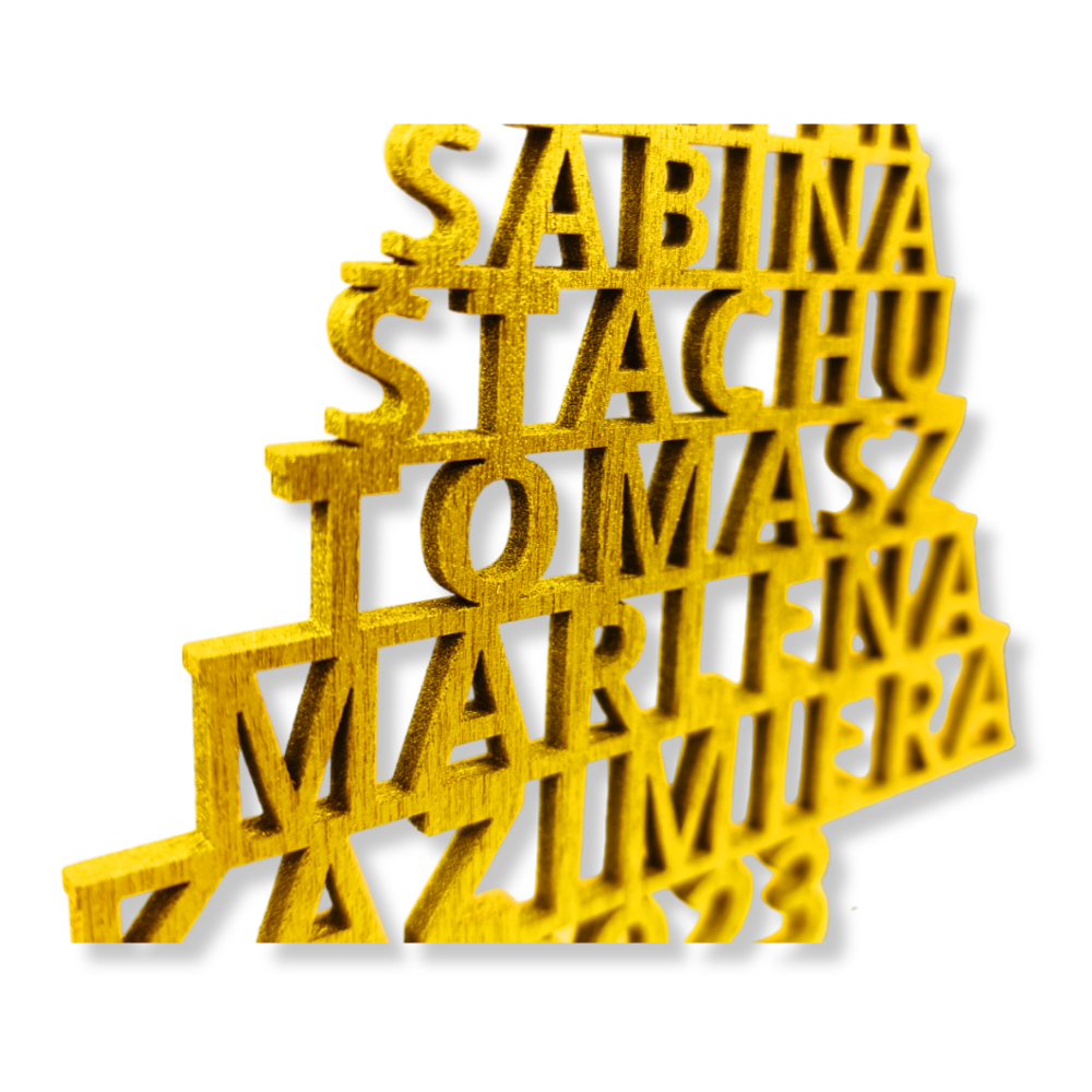 - Personalizacja imion: Możesz dodać do niej do 15 imion swoich najbliższych, tworząc wyjątkową ozdobę. Imiona zostaną rozmieszczone w takiej kolejności aby zachować oczekiwany kształt produktu, a całość będzie estetycznie wykończona. Podaj nam listę imion, a my zadedykujemy im odpowiednią przestrzeń.