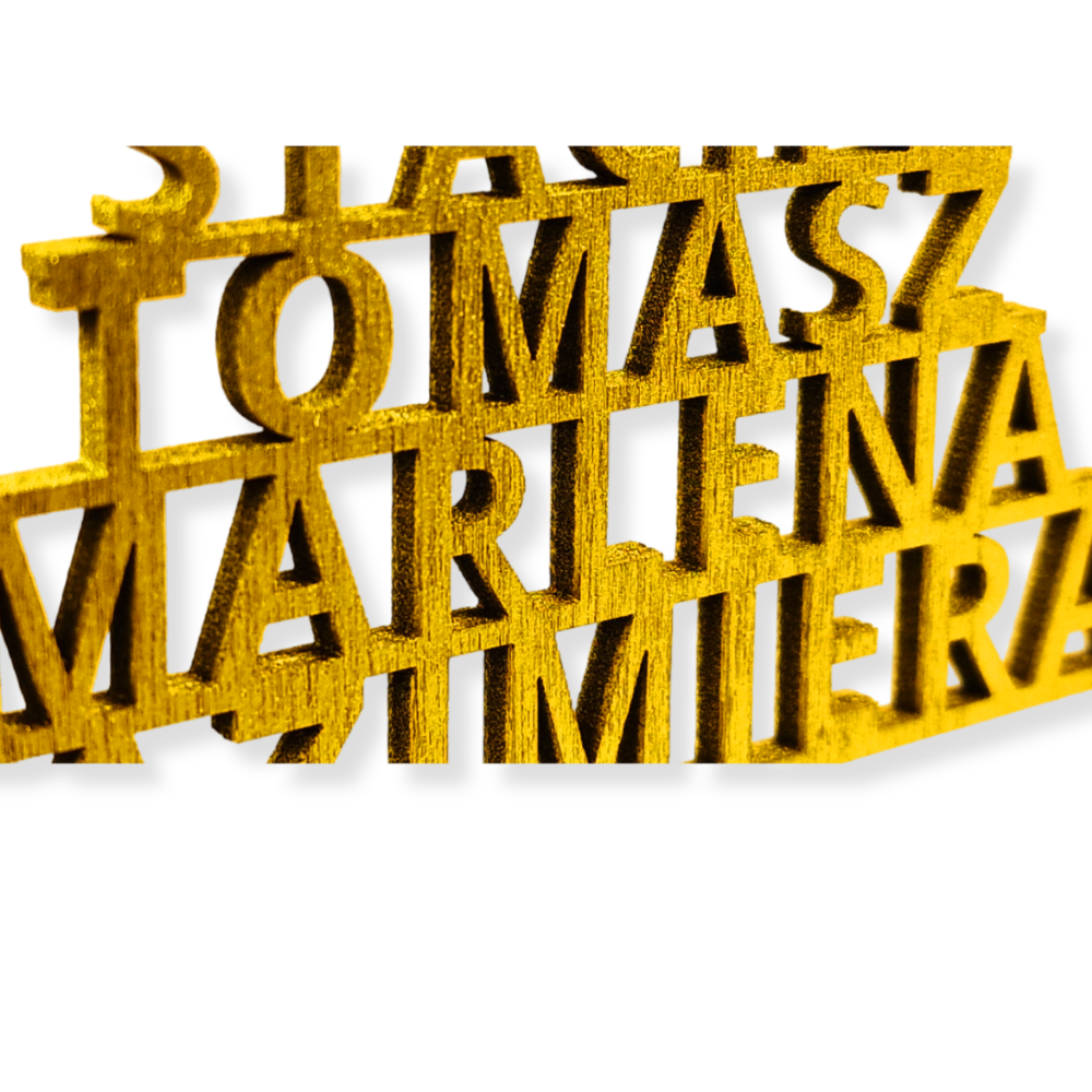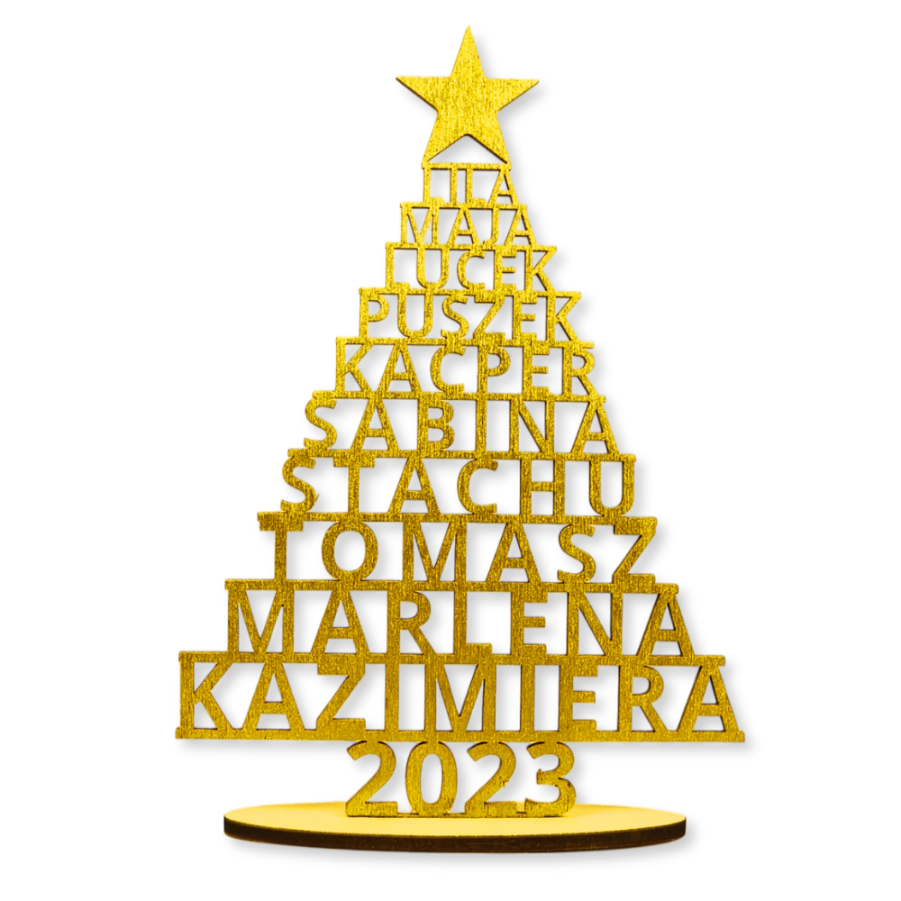 Personalizowana Choinka Drewniana z Imionami, Złoty Kolor