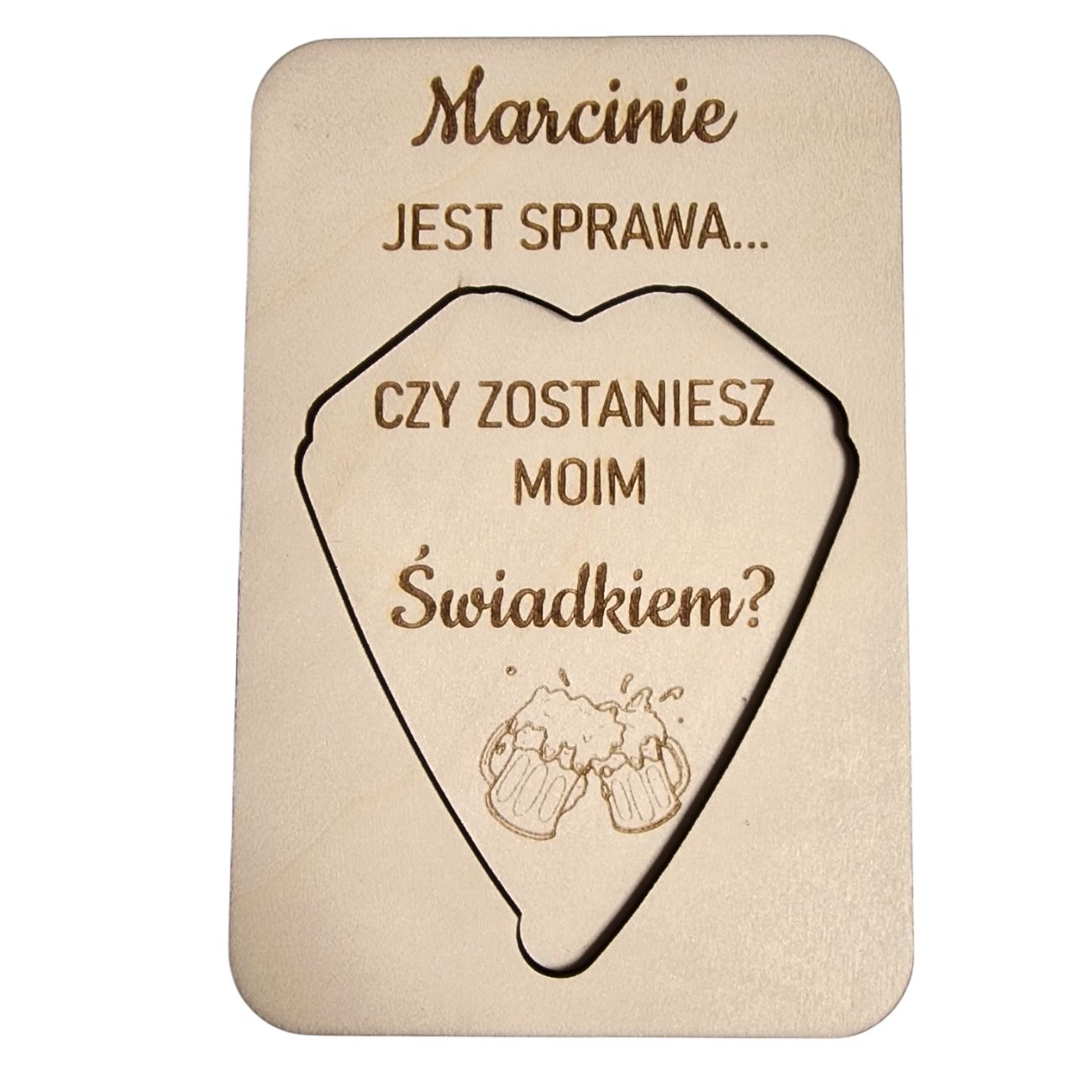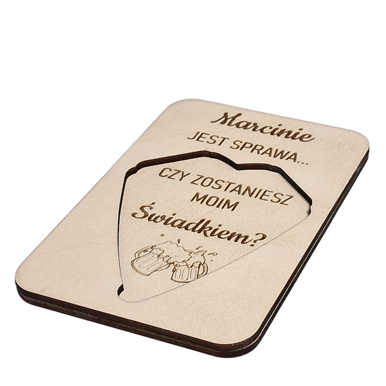 Personalizacja tego wyjątkowego prezentu polega na umieszczeniu imienia osoby, którą pytamy o bycie Świadkiem.