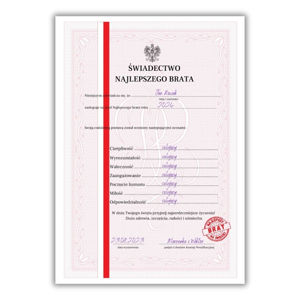 Świadectwo Najlepszego Brata – personalizacja