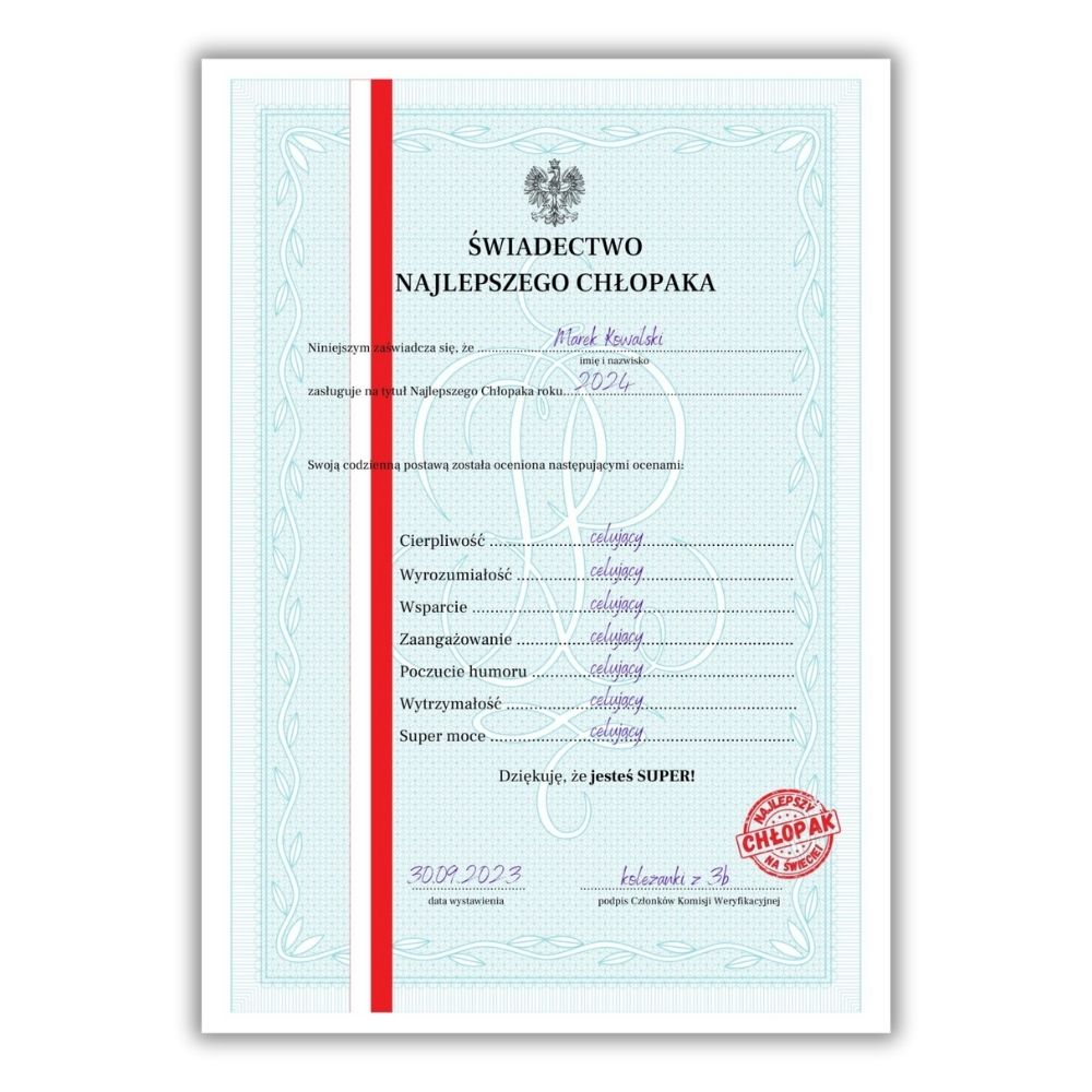 Świadectwo Najlepszego Chłopaka – personalizacja