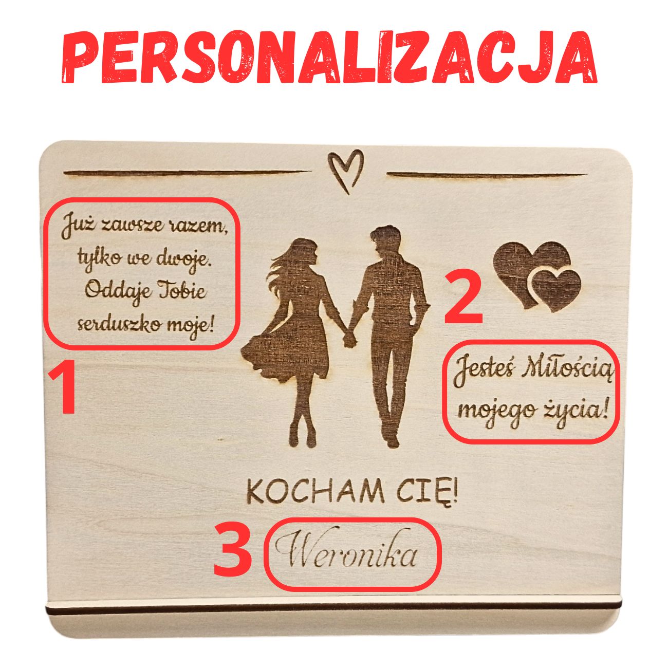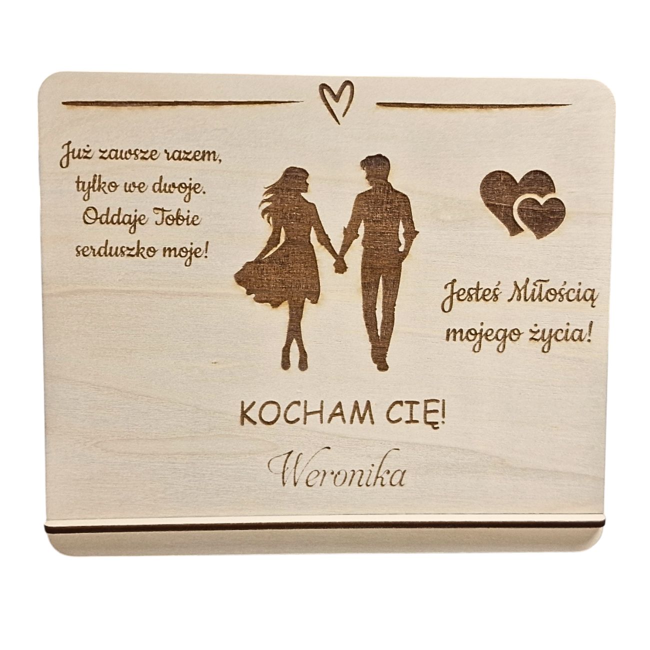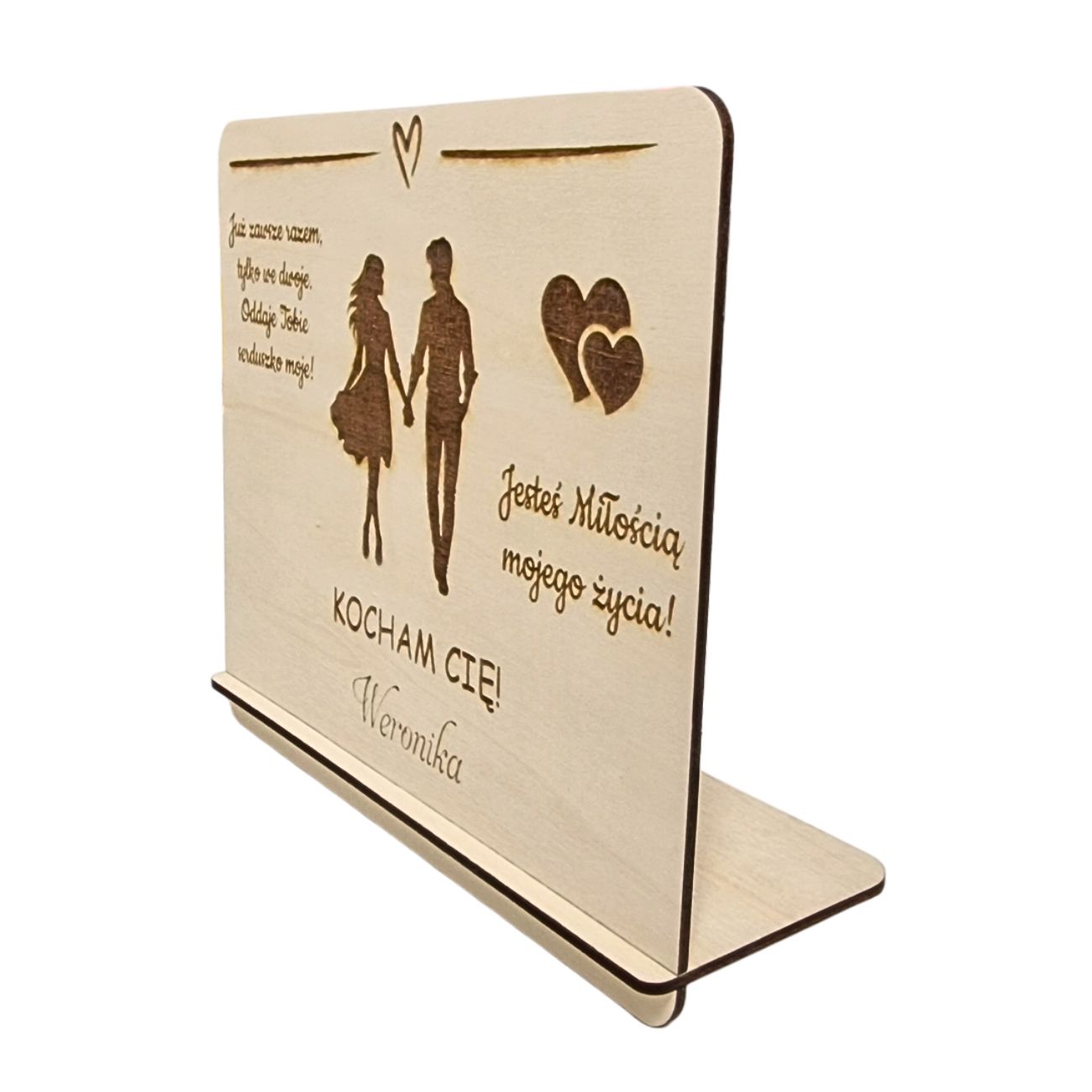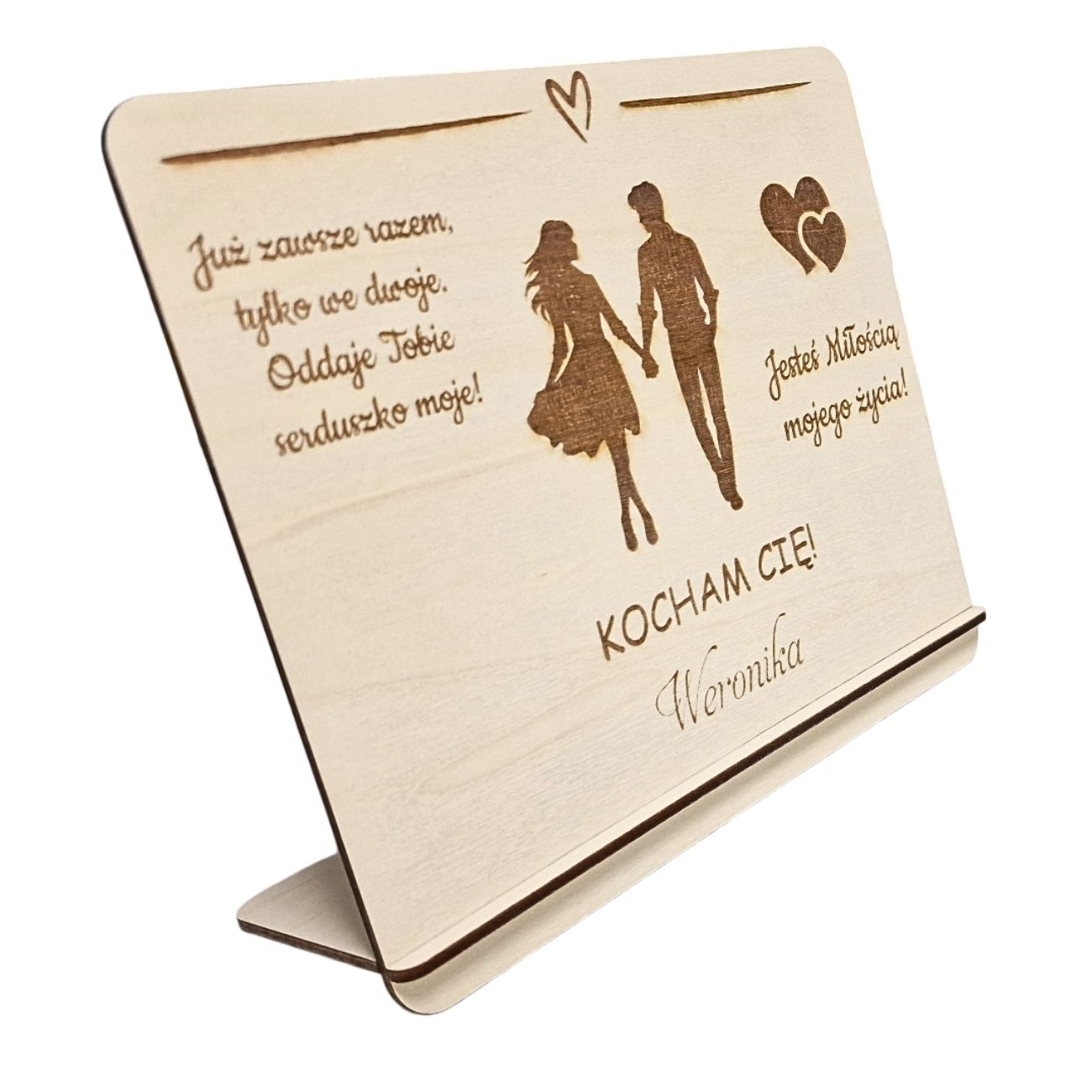 Drewniana tabliczka stojąca Kocham Cię – personalizowany grawer