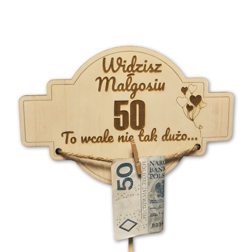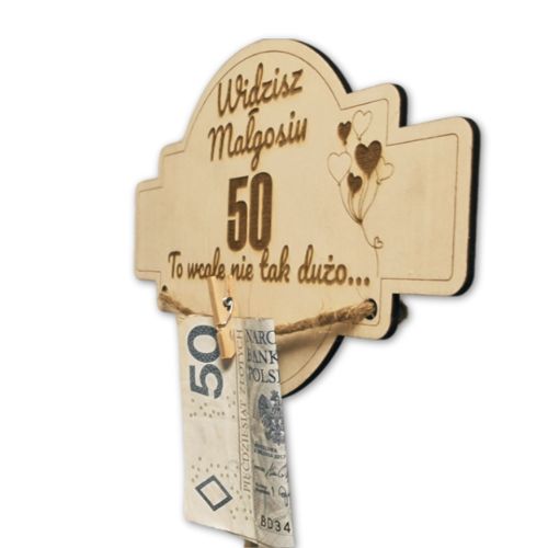 - Praktyczność: Niezwykły dodatek w postaci umieszczonego sznurka i klamerek umożliwia przypięcie banknotów, których wartość doskonale odzwierciedla wiek jubilata. Dołączamy 3 mini klamerki do przymocowania banknotów.