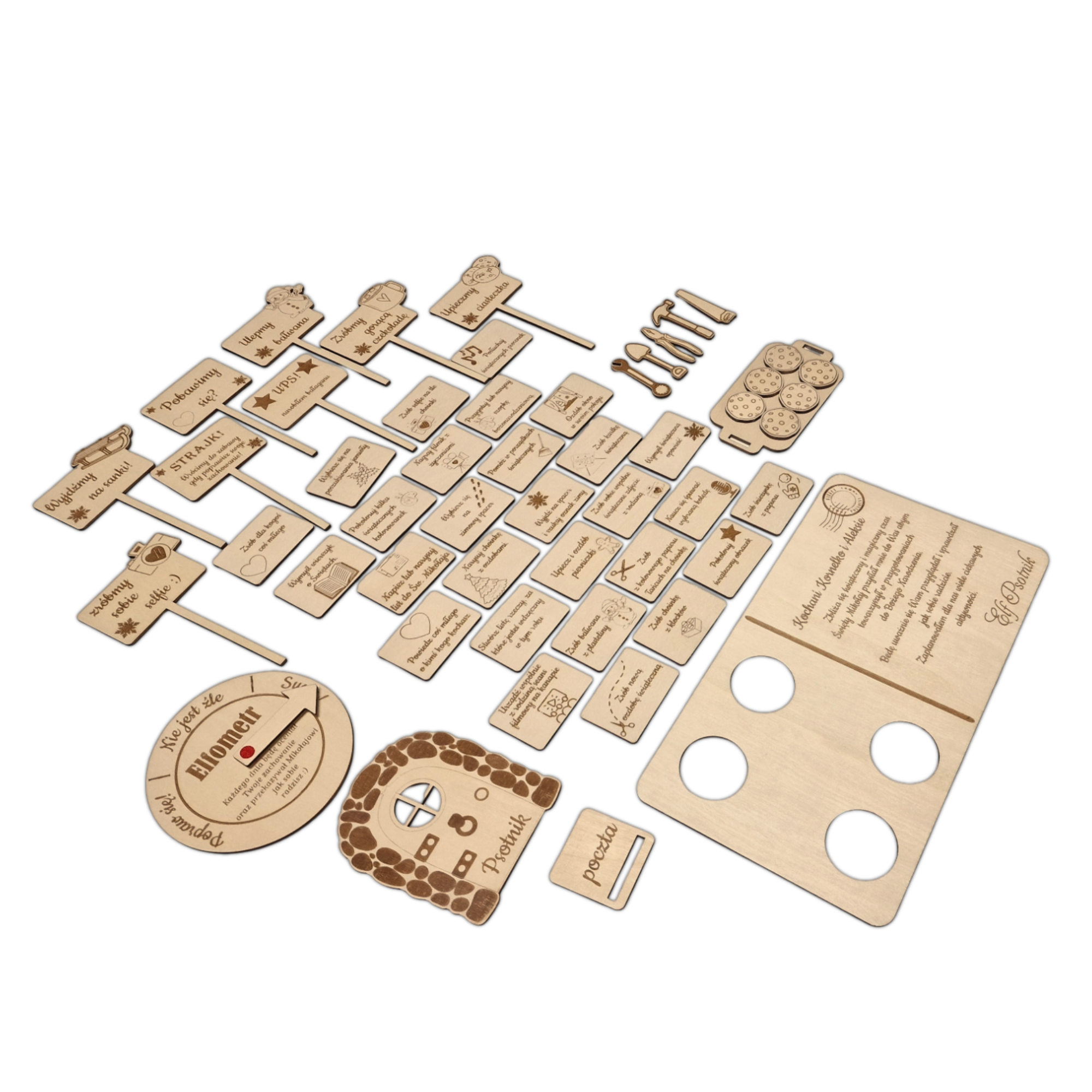 - 8 tabliczek z na patyku – dzięki którym Elf przekaże swoje plany lub prośby