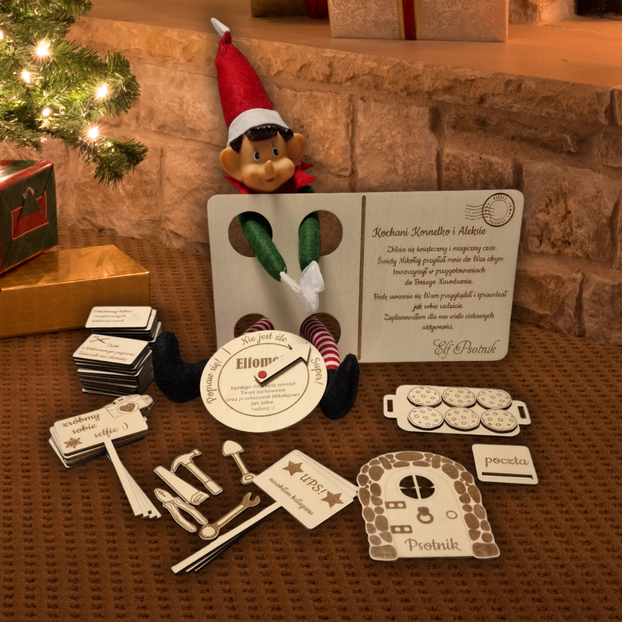 Kompletny zestaw Akcesoriów Elfa psotnika wraz z personalizowanym listem. Zawiera wszystkie niezbędne elementy do rozpoczęcia zabawy ELF ON THE SHELF (Nie zawiera samej figurki Elfa).